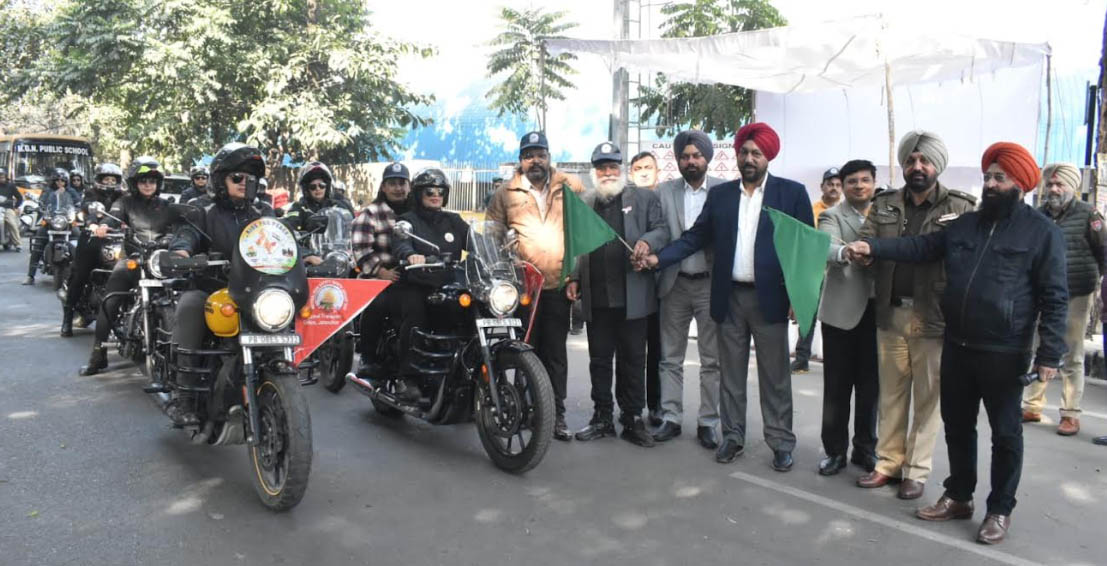 कल्याण केसरी न्यूज़, जालंधर, 22 जनवरी 2026: आम लोगों में सड़क सुरक्षा के प्रति जागरूकता बढ़ाने के उद्देश्य से मनाए जा रहे सड़क सुरक्षा माह-2026 के तहत आज क्षेत्रीय परिवहन दफ्तर द्वारा बाइक रैली निकाली गई, जिसे क्षेत्रीय परिवहन अधिकारी अमनपाल सिंह, रिटायर्ड एस.एस.पी. एम.एस. भुल्लर ज्वाइंट डायरेक्टर लीड एजेंसी ऑन रोड सेफ्टी, ए.डी.सी.पी. हरमिंदर सिंह गिल, सी.एम.एफ.ओ. नवदीप सिंह और सहायक कमिश्नर (ज) रोहित जिंदल ने हरी झंडी दिखाकर रवाना किया।