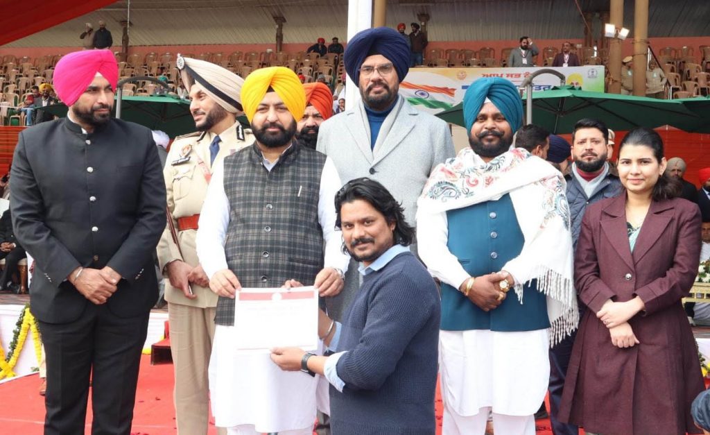 कल्याण केसरी न्यूज़, अमृतसर, 27 जनवरी 2026: गणतंत्र दिवस के अवसर पर कैबिनेट मंत्री सरदार हरदीप सिंह मुंडियां जी ने अमृतसर के युवा कलाकार सतविंदर सिंह सन्नी को सम्मानित किया। सन्नी एक प्रतिभाशाली प्रोडक्शन, आर्ट डायरेक्टर एवं अभिनेता हैं, जो पिछले 12 वर्षों से रंगमंच से जुड़े हुए हैं और उन्हें देश की प्रतिष्ठित संस्थाओं में प्रशिक्षण का अवसर प्राप्त हुआ है। वे युवाओं के लिए निःशुल्क थिएटर वर्कशॉप आयोजित करते हैं और सामाजिक विषयों पर नाटक तैयार कर समाज में जागरूकता फैलाने का कार्य कर रहे हैं। इस अवसर पर मुख्य अतिथि सरदार मुंडियां जी ने उनके योगदान की सराहना की।