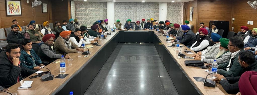 कल्याण केसरी न्यूज़, चंडीगढ़, 5 फरवरी 2026: आज संयुक्त किसान मोर्चा पंजाब के आह्वान पर मजदूर, कर्मचारी, विद्यार्थी, नौजवान और महिला संगठनों के साथ एक संयुक्त बैठक किसान भवन, चंडीगढ़ में की गई। बैठक की अध्यक्षता जोगिंदर सिंह उगराहां, हरिंदर सिंह लाखोवाल, अंग्रेज़ सिंह भदौड़, डॉ. दर्शन पाल और बूटा सिंह बुर्ज गिल ने की।