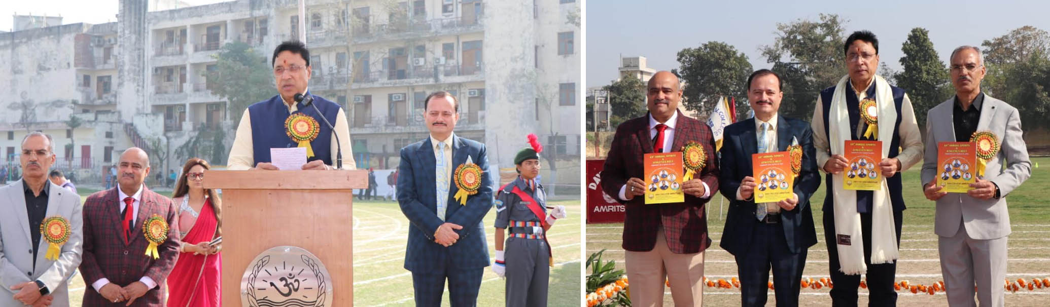 इस अवसर पर ऑनरेरी ट्रेजरर, डी ए वी कॉलेज मैनेजिंग कमेटी डॉ जे पी शूर, एडवोकेट सुदर्शन कपूर, वाइस प्रिंसिपल प्रो प्रदीप सैली, डॉ बी बी यादव, प्रो विकास भारद्वाज , स्टाफ सेक्रेटरी डॉ नीरज गुप्ता , प्रो संदीप कुमार और सभी स्टाफ सदस्य उपस्थित रहे। दो दिवसीय इस खेल दिवस में एथलेटिक्स के विभिन्न कार्यक्रमों के साथ-साथ खेल प्रदर्शनियाँ भी आयोजित की जाएंगी। समापन समारोह कल आयोजित किया जाएगा, जिसमें विजेताओं को पुरस्कार वितरित किए जाएंगे।