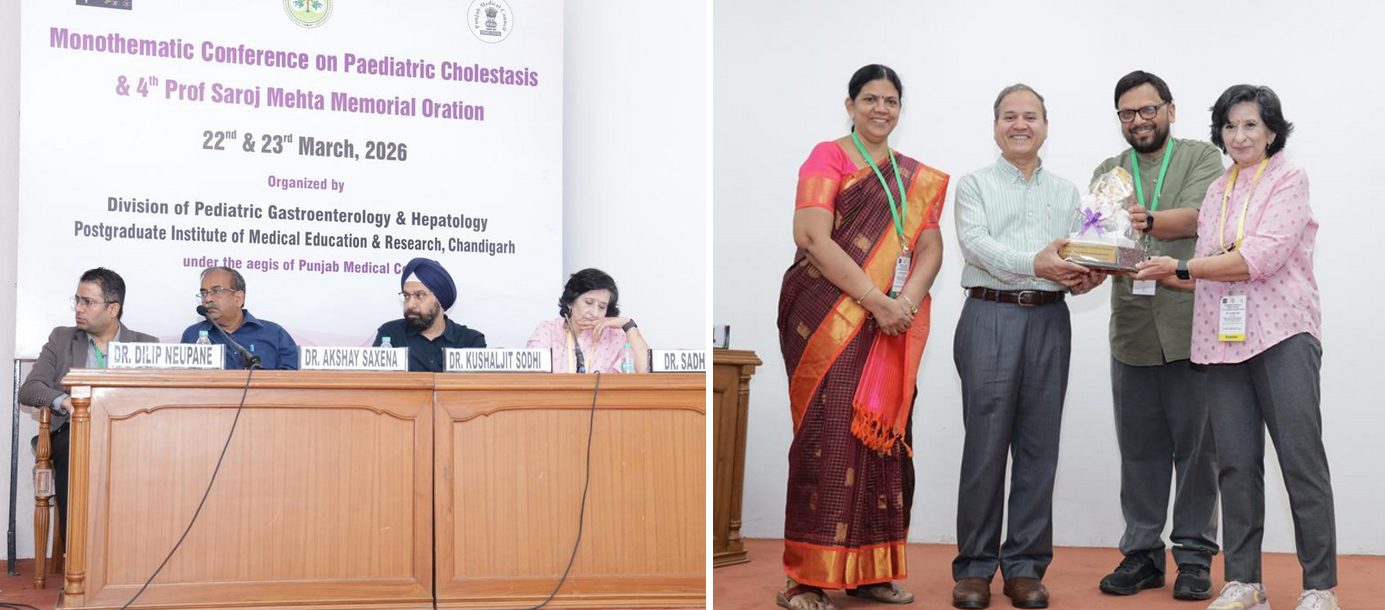 इसी बढ़ती क्लिनिकल मांग और अकादमिक जिम्मेदारी की पृष्ठभूमि में, पीडियाट्रिक गैस्ट्रोएंटेरोलॉजी एवं हेपेटोलॉजी डिवीजन, पीजीआईएमईआर ने “ मोनोथेमैटिक कॉन्फ्रेंस ऑन पीडियाट्रिक कोलेस्टेसिस एवं चौथा प्रो. सरोज मेहता मेमोरियल ओरेशन (22–23 मार्च 2026)” का उद्घाटन किया। इस सम्मेलन में देश-विदेश के विशेषज्ञों ने भाग लिया और बाल कोलेस्टेटिक यकृत रोगों की चुनौतियों पर विचार-विमर्श किया।