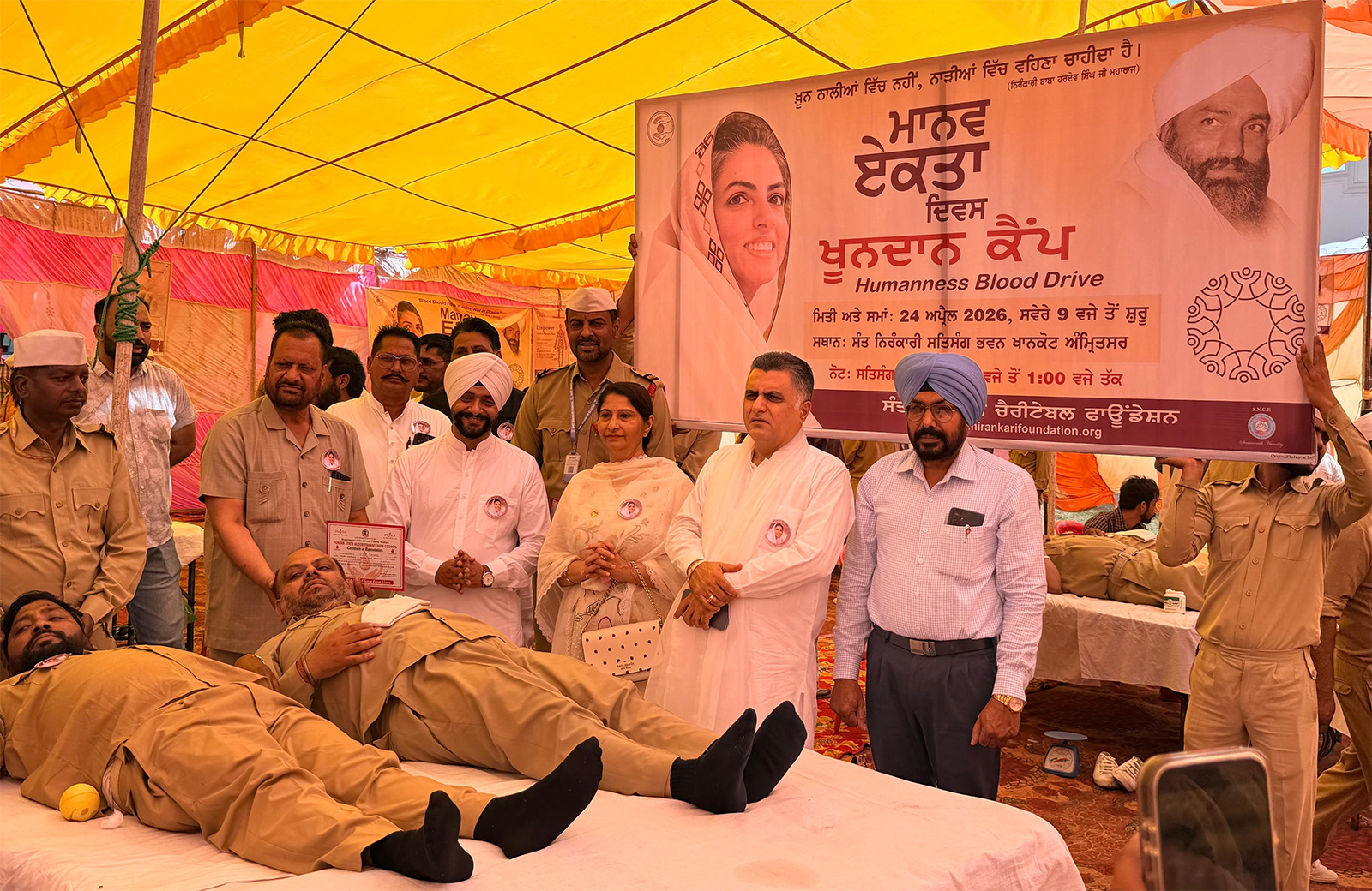 मानव एकता दिवस के अवसर पर ब्रांच अमृतसर में रक्तदान शिविर का आयोजन हुआ जिसमे ब्लड बैंक गुरु नानकदेव हस्पताल , सिविल हस्पताल ,अजनाला व तरण तारण अस्पतालों के अनुभवी चिकित्सक एवं उनकी टीम ने रक्तदाताओं की समुचित स्वास्थ्य जांच के उपरांत सुरक्षित, सुव्यवस्थित एवं प्रभावी ढंग से रक्तदान की प्रक्रिया सम्पन्न कराई; जिनसे 470 रक्त युनिट संकलित की गई। संपूर्ण आयोजन के दौरान स्वच्छता, सतर्कता एवं सेवा-भाव का विशेष ध्यान रखा गया, जिससे यह पहल केवल जीवनदायिनी सेवा तक सीमित न रहकर मानवता, करुणा और उत्तरदायित्व के उच्चतम आदर्श का प्रतीक बनकर उभरी।