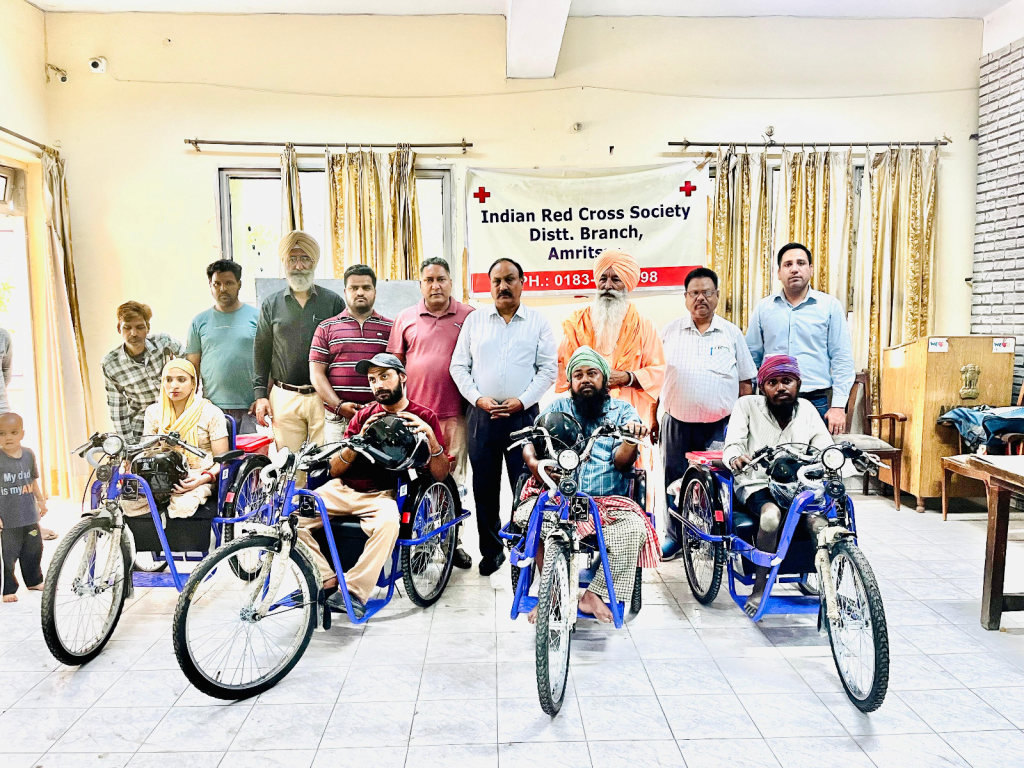 कल्याण केसरी न्यूज़ अमृतसर 9 जून 2025: डिप्टी कमिश्नर आईएएस साक्षी साहनी, अमृतसर के निर्देशों पर जिला रेडक्रॉस सोसायटी ने एक बार फिर दिव्यांगों के लिए सराहनीय कार्य किया है। रेडक्रॉस सचिव श्री सैमसन मसीह के मार्गदर्शन में दिव्यांग व्यक्तियों के लिए सहायक उपकरणों की खरीद/फिटिंग के लिए सहायता योजना के तहत 80 प्रतिशत से अधिक विकलांगता वाले चार जरूरतमंद लाभार्थियों को मोटराइज्ड ट्राइसाइकिल प्रदान की गई। इस प्रयास का मुख्य उद्देश्य दिव्यांगों को आत्मनिर्भर बनाना और उनके दैनिक जीवन को आसान बनाना था। ये ट्राइसाइकिल न केवल उन्हें चलने-फिरने में मदद करेंगी बल्कि उन्हें सामाजिक और आर्थिक रूप से मजबूत बनाने में भी मददगार साबित होंगी। इस संबंध में रेडक्रॉस सोसायटी के सचिव सैमसन मसीह ने कहा कि यह हमारे लिए बहुत ही भावुक और गर्व का क्षण है कि हम ऐसे जरूरतमंद दिव्यांग लोगों को मोटराइज्ड ट्राइसाइकिल जैसी आवश्यक सुविधा प्रदान कर रहे हैं। यह सारा कार्य डिप्टी कमिश्नर मैडम साक्षी सोहनी जी के मार्गदर्शन और प्रशासन के सहयोग से संभव हो पाया है। हम आने वाले दिनों में भी ऐसे ही जनहित के कार्य निरंतर करने का प्रयास करते रहेंगे ताकि दिव्यांग समाज की मुख्यधारा से जुड़ सकें। स्थानीय स्तर पर इस पहल की काफी सराहना हो रही है और इसे दिव्यांगों के हक में एक मजबूत कदम माना जा रहा है। रेडक्रॉस सोसायटी ने भविष्य में अन्य लाभार्थियों को भी ऐसी सहायता प्रदान करने की योजना बनाई है। इस अवसर पर भाई घनया जी पक्षी घर के संरक्षक बाबा चहल, धर्मिंदर सिंह गिल, शीशपाल, प्रशांत चौहान और मुकल शर्मा सहित कई अन्य गणमान्य व्यक्ति मौजूद थे।