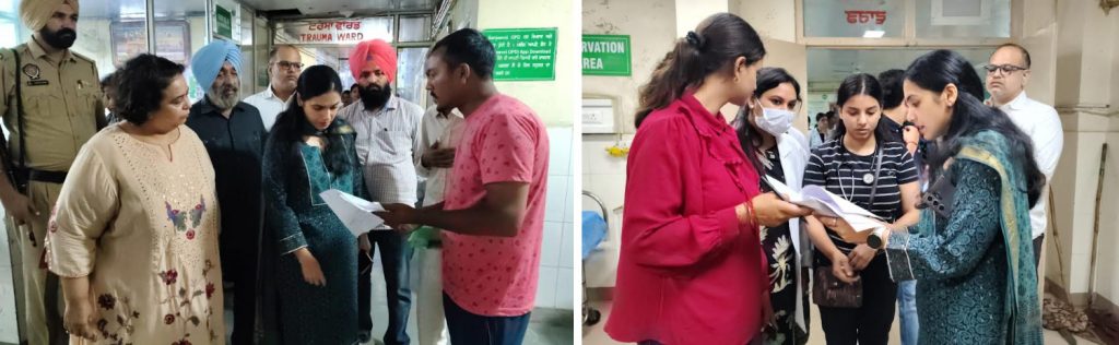 कल्याण केसरी न्यूज़, अमृतसर, 30 जुलाई 2025: आज डिप्टी कमिश्नर श्रीमती साक्षी साहनी ने सिविल अस्पताल अमृतसर का अचानक दौरा किया। इस दौरान उन्होंने इमरजेंसी वार्ड का निरीक्षण करते हुए मरीजों से बातचीत की और उनकी समस्याएं सुनकर मौके पर ही डॉक्टरों को निर्देश दिए कि मरीजों की समस्याओं का तुरंत समाधान किया जाए और किसी भी मरीज को किसी प्रकार की परेशानी न होने दी जाए।