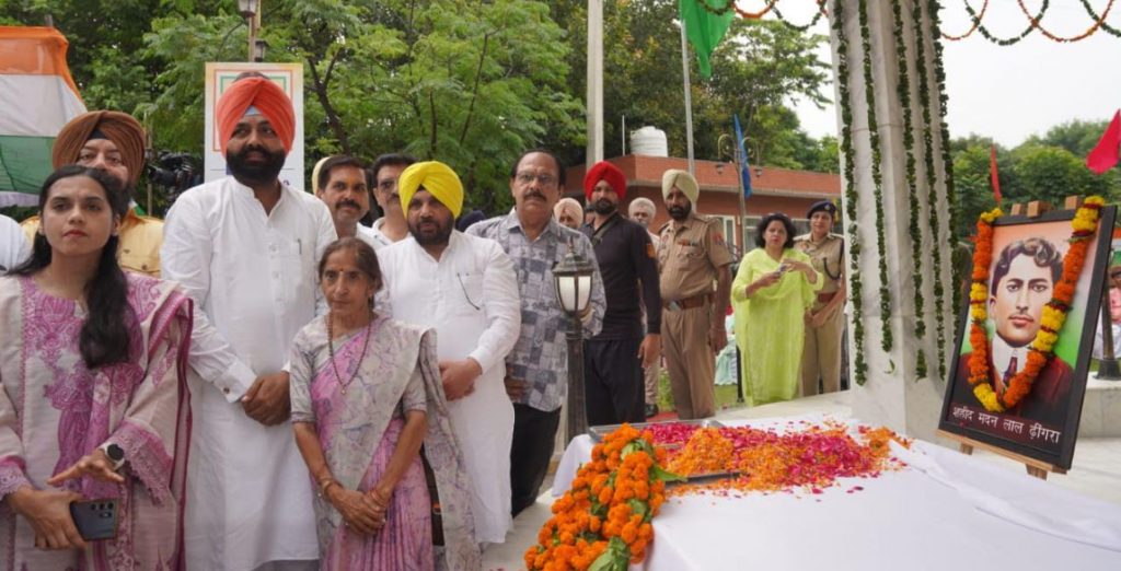 कल्याण केसरी न्यूज़, अमृतसर, 17 अगस्त 2025: पंजाब सरकार की ओर से शहीद मदन लाल ढींगरा की शहादत से संबंधित राज्य स्तरीय समारोह शहीद मदन लाल स्मारक, गोल बाग में आयोजित किया गया। इस समारोह में मुख्य अतिथि के रूप में पंजाब के परिवहन एवं जेल मंत्री स लालजीत सिंह भुल्लर और लोक निर्माण एवं बिजली मंत्री पंजाब स हरभजन सिंह ई.टी.ओ. ने शिरकत की। सबसे पहले दोनों कैबिनेट मंत्रियों ने शहीद मदन लाल ढींगरा की प्रतिमा पर पुष्प अर्पित कर श्रद्धांजलि दी। इस अवसर पर उनके साथ विधायक डॉ. अजय गुप्ता, मेयर श्री जतिंदर सिंह मोती भाटिया, डिप्टी कमिश्नर श्रीमती साक्षी साहनी, चेयरमैन श्री करमजीत सिंह रिंटू, डिप्टी पुलिस कमिश्नर श्री आलम विजय सिंह, अतिरिक्त डिप्टी कमिश्नर श्री रोहित गुप्ता, एस.डी.एम. स गुरसिमरन सिंह ढिल्लों, श्री जसकरन बंदेशा और अन्य अधिकारी उपस्थित थे।