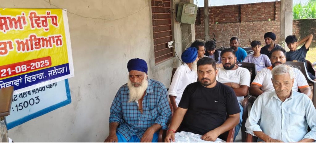 कल्याण केसरी न्यूज़, जालंधर, 21 अगस्त 2025: डिप्टी कमिश्नर डा. हिमाशु अग्रवाल के नेतृत्व में और डायरेक्टर युवा सेवाएं पंजाब के निर्देशानुसार, युवा सेवाएं विभाग ने गांव पसन के युवा सेवाएं क्लब में नशा विरोधी जागरूकता अभियान चलाया, जिसमें गांव के सरपंच अशोक कुमार और प्रसिद्ध गायक दलविंदर दयालपुरी ने नशा विरोधी गीतों से युवाओं को नशे से दूर रहने के लिए प्रेरित किया। सहायक डायरेक्टर युवा सेवाएं रवि दारा ने नशा विरोधी गीत गाए और युवाओं से खेल के मैदान में आने का अनुरोध किया।