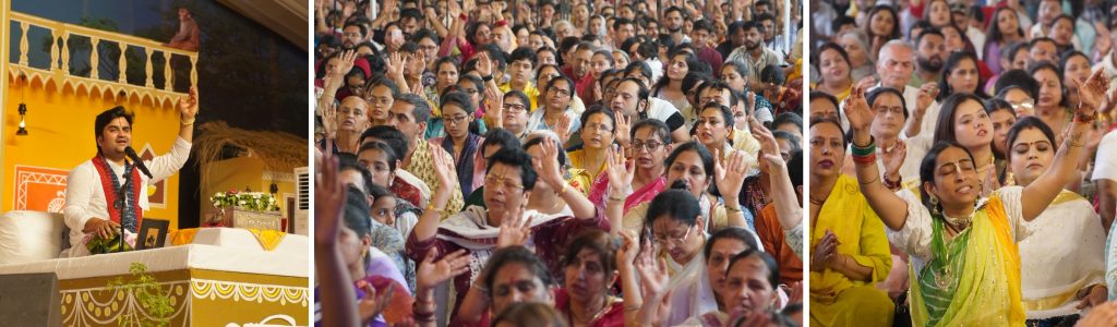 राधा रानी के भजनों पर संपूर्ण कथा श्रवण करने पहुंचे I चंडीगढ़वासी अपने आपको नृत्य करने से रोक नहीं पाए I पूरा पंडाल वृंदावन और बरसाना धाम में परिवर्तित होता हुआ दिखा, कथा के छठे दिन डांडिया उत्सव भी आनंद के साथ मनाया गया।
