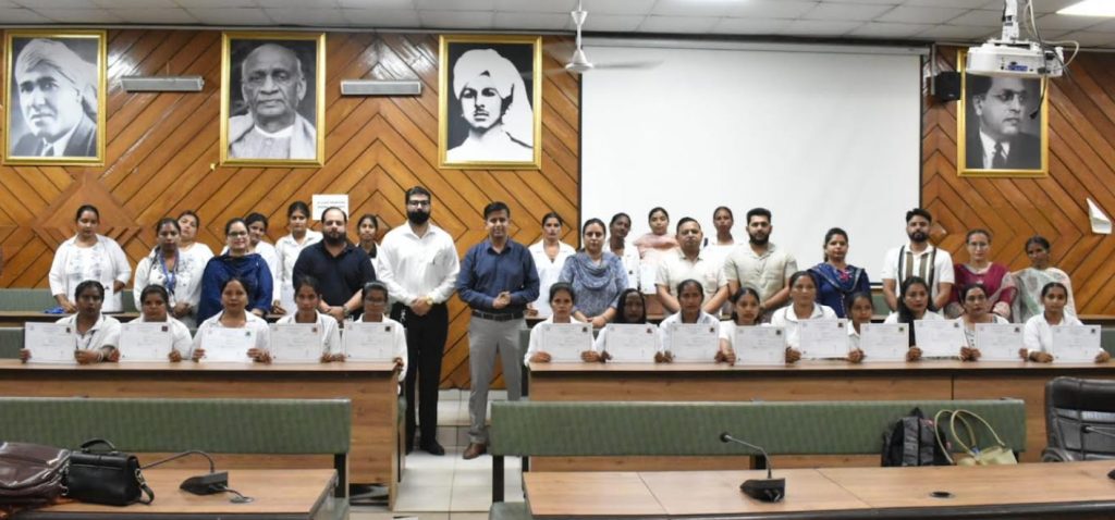कल्याण केसरी न्यूज़, जालंधर, 02 अक्टूबर 2025: डिप्टी कमिश्नर डॉ. हिमांशु अग्रवाल ने पंजाब राज्य ग्रामीण आजीविका मिशन और पंजाब कौशल विकास मिशन के संयुक्त प्रयास के तहत केयरगिवर-मातृ-शिशु (गैर-क्लिनिकल) कोर्स पूरा करने वाली 30 प्रशिक्षार्थियों को कोर्ट वितरित किए।