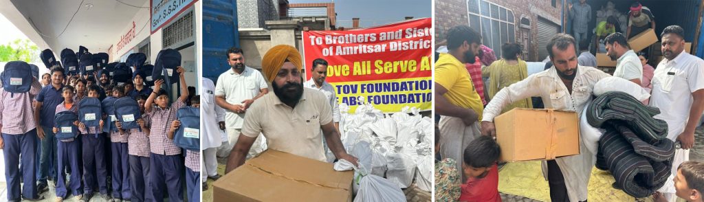 इसके अलावा, नई दिल्ली से आई एक स्वयंसेवी संस्था ने कोर्ट गुरबख्श और रामदास गांव में 200 परिवारों को घरेलू सामान वितरित किया। इस सामान में गद्दे, बेडशीट, कंबल, तौलिए, मच्छर भगाने का तेल, बाल्टियां, मग, चकला-बेलन, स्टील के जग, प्लेटें, गिलास, चम्मच आदि शामिल थे।