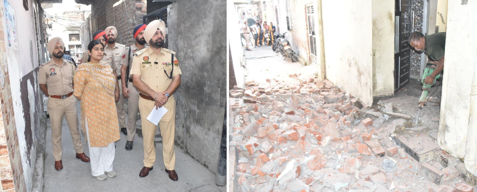 पुलिस कमिश्नर धनप्रीत कौर ने इस संबंध में जानकारी देते हुए बताया कि मनजीत कौर उर्फ भंभो और मोहिंदरजीत कौर उर्फ लंबो, निवासी आबादपुरा, जालंधर की अवैध संपत्ति को ध्वस्त किया गया है। दोनों महिलाएं कुख्यात नशा तस्कर हैं, जिनमें से मनजीत कौर के खिलाफ एन.डी.पी.एस. एक्ट के तहत 3 एफ.आई.आर. और मोहिंदरजीत कौर के खिलाफ एक एफ.आई.आर. दर्ज है।