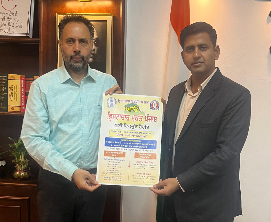 कल्याण केसरी न्यूज़, जालंधर, 01 नवंबर 2025: भ्रष्टाचार की रोकथाम के लिए पंजाब सरकार की हिदायतों पर विजिलेंस ब्यूरो, पंजाब द्वारा ‘चौकसी-साझी जिम्मेदारी’ के तहत मनाए जा रहे विजिलेंस जागरूकता सप्ताह के तहत डिप्टी कमिश्नर डा. हिमांशु अग्रवाल द्वारा जागरूकता पोस्टर जारी किया गया। इस मौके पर उनके साथ एस.एस.पी. विजिलेंस ब्यूरो जालंधर रेंज हरप्रीत सिंह मंडेर भी मौजूद थे।