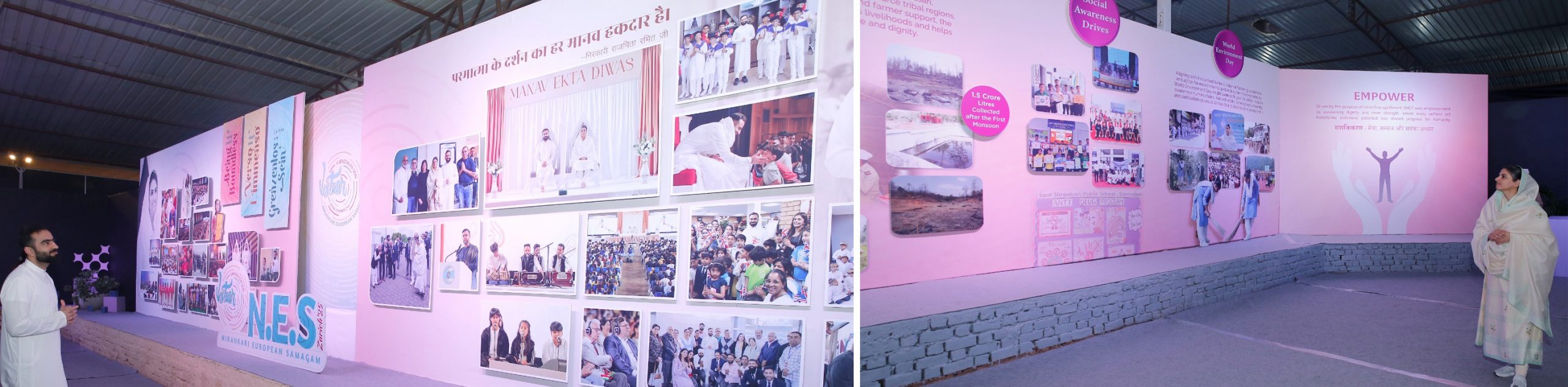 संत समागम में आधुनिक तकनीक एवं लाईट्स आदि का इस्तमाल करते हुए अत्यंत आकर्षक बनाई गई निरंकारी प्रदर्शनी श्रद्धालुओं के आकर्षण का मुख्य केन्द्र बनीं हुई है। श्रद्धालुओं की सुविधा के लिए निरंकारी प्रदर्शनी में मुख्य प्रदर्शनी, बाल प्रदर्शनी एवं संत निरंकारी चैरिटेबल फाउंडेशन की प्रदर्शनी-इस तरह तीन भाग बनाये गए हैं।