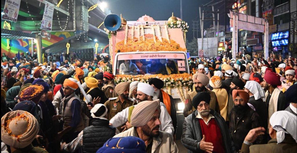 देर शाम नगर कीर्तन के खन्ना पहुंचने पर कैबिनेट मंत्री तरूणप्रीत सिंह सौंद की ओर से नगर कीर्तन की अगुवाई करते हुए शहर में दाखिल होने पर सीस निभाया ओर आगे चलकर ललहेड़ी रोड़ चौंक पहुंचे। जहां हजारों श्रद्धालुओं के साथ कैबिनेट मंत्नी ने श्री गुरु ग्रंथ साहिब जी की पालकी साहिब पर फूलों की बरसात करते हुए हिंद की चादर, श्री गुरु तेग बहादुर जी को पुष्पांजलि अर्पित की।