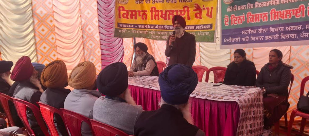कैन कमिश्नर पंजाब डा. अमरीक सिंह के निर्देशों और प्रोजेक्ट अधिकारी जालंधर डा. मनधीर सिंह के नेतृत्व में लगाए गए इस प्रशिक्षण कैंप में सहायक गन्ना विकास अधिकारी जालंधर डा. गुरचरण सिंह, डायरेक्टर कीट वैज्ञानिक डा. युवराज सिंह, फसल वैज्ञानिक डा. जशनजोत कौर, गन्ना अनुसंधान केंद्र कपूरथला से डा. अनुराधा, प्रिंसिपल साइंटिस्ट पी.ए.यू. लुधियाना डा. मनिंदर सिंह ने गन्ने की खेतीबाड़ी तकनीकों, कीटों-मकोड़ों की रोकथाम, रोग प्रबंधन, गन्ने की अंतर-फसल तथा किसानों की भलाई के लिए चलाई जा रही विभिन्न सरकारी योजनाओं के बारे में जानकारी दी।