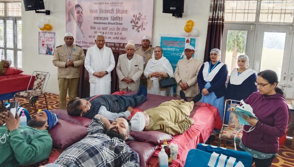 कल्याण केसरी न्यूज़, समगौली, 8 फरवरी 2026: निरंकारी सतगुरु माता सुदीक्षा जी महाराज के पवित्र आशीर्वाद से, संत निरंकारी चैरिटेबल फाउंडेशन के नेतृत्व में संत निरंकारी सत्संग भवन, समगौली में रक्त दान शिविर लगाया गया, जिसमें कुल 170 श्रद्धालुओं ने रक्त दान किया। कैंप का उद्घाटन चंडीगढ़ ज़ोन के जोनल इंचार्ज ओ.पी. निरंकारी जी ने स्थानीय मुखी मास्टर गुरनाम सिंह जी और अन्य गणमानीय व्यक्तियों के साथ किया।