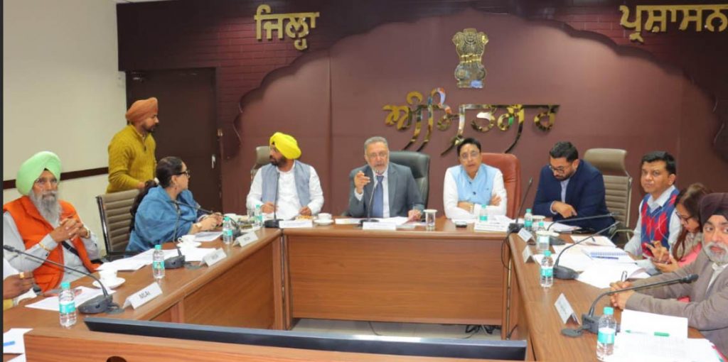 कल्याण केसरी न्यूज़, अमृतसर, 21 फरवरी 2026: पंजाब के स्वास्थ्य एवं परिवार कल्याण मंत्री डॉ. बलबीर सिंह ने जिला प्रबंधकीय परिसर अमृतसर में जिला प्रशासन और स्वास्थ्य विभाग के अधिकारियों के साथ बैठक कर जिले में मुख्यमंत्री स्वास्थ्य योजना के तहत बनाए जा रहे कार्डों की समीक्षा की। इस अवसर पर लोक निर्माण मंत्री स. हरभजन सिंह ईटीओ, विधायक अजनाला स. कुलदीप सिंह ढालीवाल, विधायक अमृतसर केंद्रीय डॉ. अजय गुप्ता, विधायक अमृतसर पूर्वी श्रीमती जीवनजोत कौर, विधायक अमृतसर पश्चिमी डॉ. जरबीर सिंह संधू, विधायक अटारी स. जसविंदर सिंह रामदास, पंजाब हेल्थ सिस्टम्स कॉर्पोरेशन के चेयरमैन स. गुरशरण सिंह छीना, जिला प्रधान आम आदमी पार्टी प्रभबीर सिंह बराड़, प्रधान गुरप्रताप सिंह संधू सहित उपायुक्त श्री दलविंदरजीत सिंह, अतिरिक्त उपायुक्त (जनरल) श्री रोहित गुप्ता, अतिरिक्त उपायुक्त (शहरी विकास) श्रीमती अमनदीप कौर, एसडीएम बाबा बकाला स. अमनदीप सिंह, एसडीएम अजनाला स. रविंदर सिंह अरोड़ा, सिविल सर्जन डॉ. सतिंदर सिंह बजाज तथा अन्य अधिकारी उपस्थित थे।