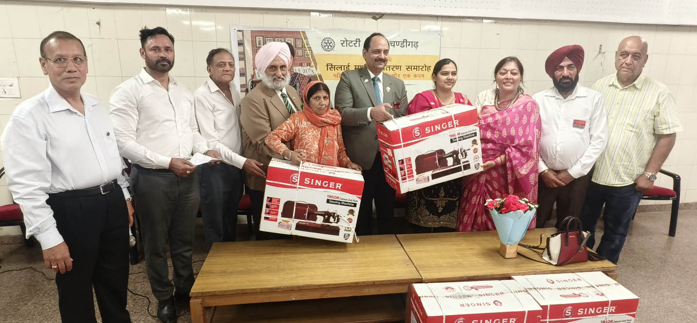 कल्याण केसरी न्यूज़, चंडीगढ़, 9 मार्च 2026: अंतरराष्ट्रीय महिला दिवस के अवसर पर आज कम्युनिटी सेंटर, सेक्टर-42, चंडीगढ़ में रोटरी क्लब, चंडीगढ़ एवं नेचर नाइन फाउंडेशन द्वारा “प्रोजेक्ट वृद्धि” के अंतर्गत सिलाई मशीन वितरण समारोह का आयोजन किया गया। कार्यक्रम का मुख्य उद्देश्य महिलाओं को आत्मनिर्भर बनाना तथा उन्हें स्वरोजगार के लिए प्रेरित करना रहा। इस अवसर पर मुख्य अतिथि रो. रवि प्रकाश (डी.जी., रोटरी मंडल 3080) की गरिमामयी उपस्थिति में 21 सिलाई मशीनें जरूरतमंद महिलाओं को वितरित की गईं, ताकि वे घर से ही कार्य कर अपने परिवार की आर्थिक स्थिति को सुदृढ़ बना सकें। इस मौके पर आभा शर्मा प्रेसिडेंट रोटरी क्लब चंडीगढ़, अरुण अग्रवाल सेक्रेटरी रोटरी क्लब चंडीगढ़ और नीरज सूद-नेचर नाइन फाउंडेशन से उपस्थित थे।